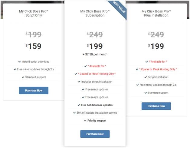 The My Click Boss Pro offers 3 prices, depending on your marketing needs.
