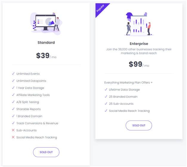 This link tracker tool currently has 2 pricing models that consist of the Standard and Enterprise plan.