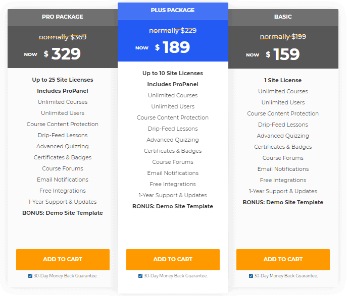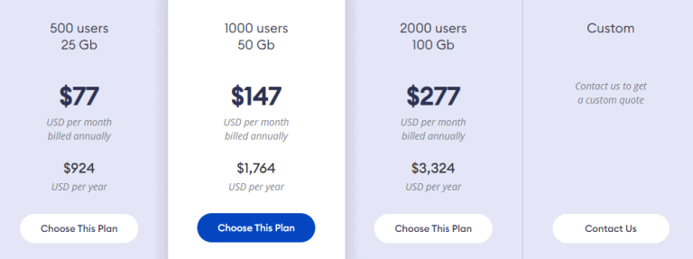 Zippy Courses has different plans available for you. The major differences are the number of admin users and limitations on emails per month and file storage or transfer.