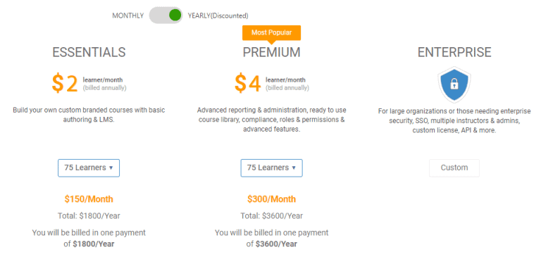 WizIQ also has plans for LMS. These are the Elite and Infinite plans.