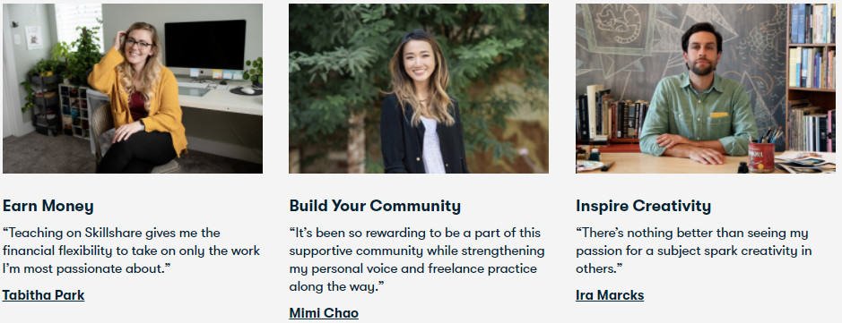 SkillShare is another online course marketplace you might want to consider if you want to earn monthly royalties through content creation. This platform focuses on creative education in animation, design, illustration, lifestyle, photo and film, business, and writing.