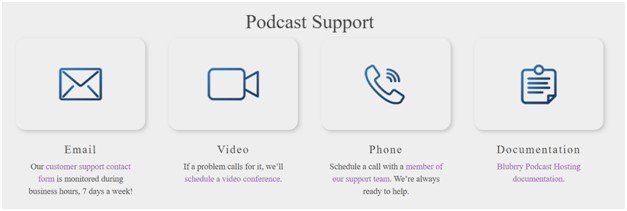Customer support is where Blubrry excels. It’s one of the few digital products that offer phone support. You can also reach customer service via email, video call, and documentation.