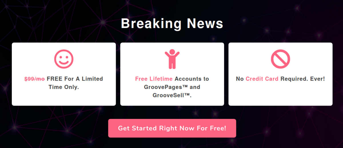By clicking this link, you can signup for FREE limited lifetime access to GrooveSell, GrooveAffiliate, and GroovePages Lite with no commitments. This free account is not like any other service. It is entirely free, and you do not even need to input any credit card info.