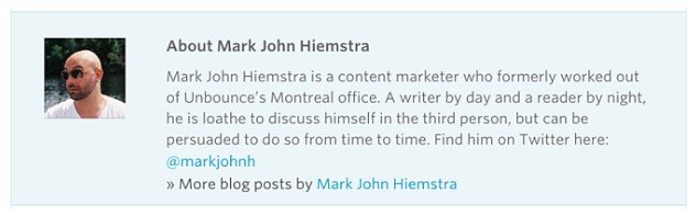 This is a no-brainer, really. It’s your bio, after all. This strategy is most helpful when writing guest posts and pursuing other content outreach activities.