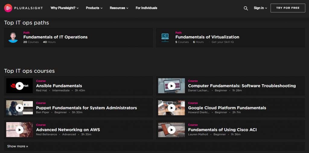 - In-depth lessons and advanced content. Pluralsight provides more in-depth training through its online courses.