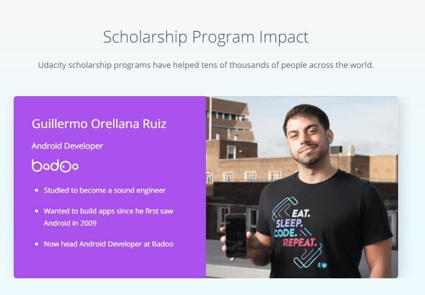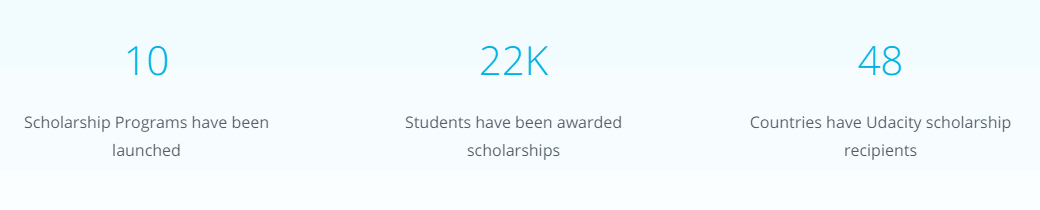 It is already given and discussed that Udacity’s value for money is higher than Udemy. To compensate for this category, Udacity integrates with third-party providers such as Google, AT&T, Lyft, and Accenture to offer scholarships to more than 22,000 learners around the world.
